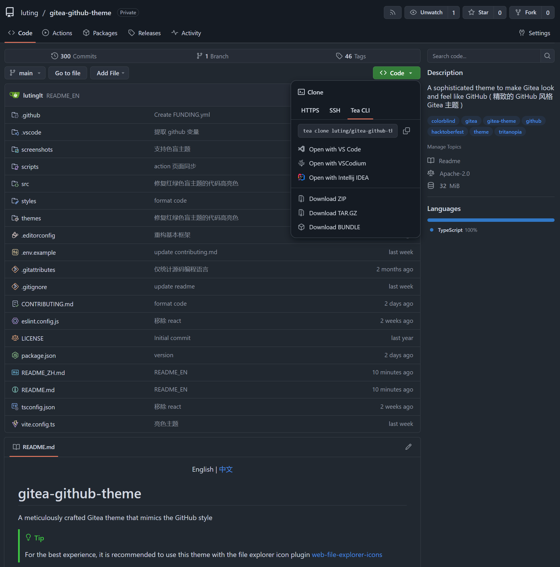 A Gitea theme that pursues GitHub style not only in colors but also in styling details.