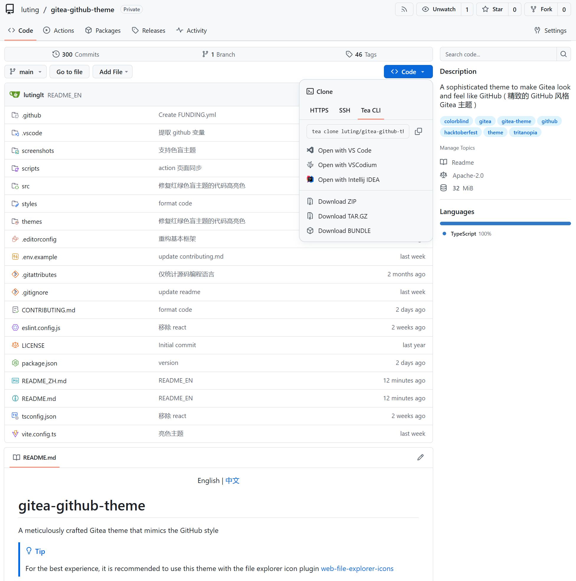 A Gitea theme that pursues GitHub style not only in colors but also in styling details.