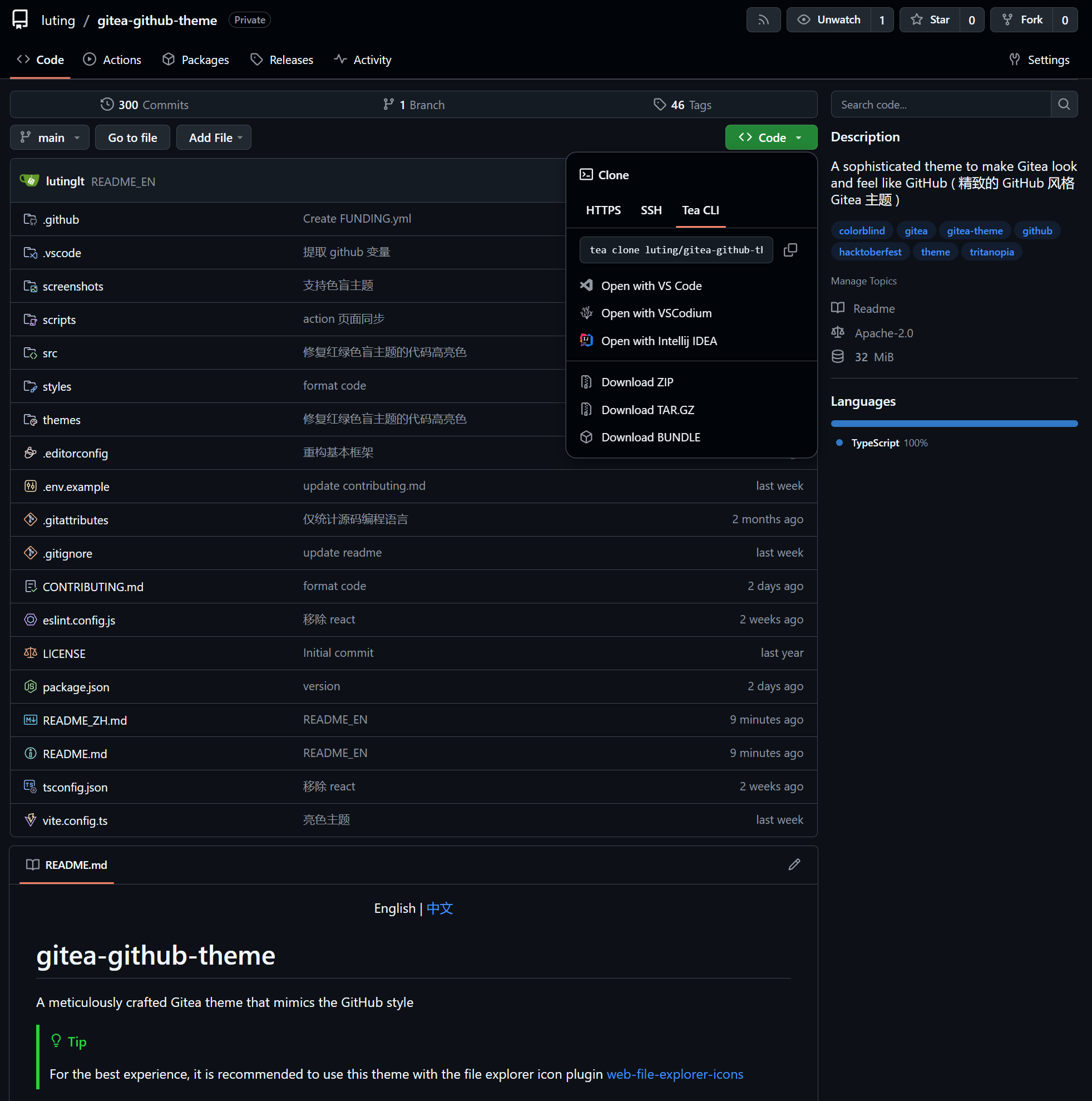 A Gitea theme that pursues GitHub style not only in colors but also in styling details.